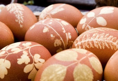 8.用纱布包起来并用棉线系紧,一个印花鸡蛋的雏形就做好了。