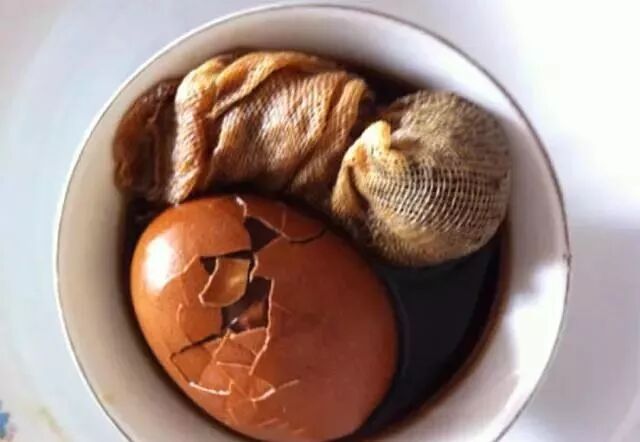 鸡蛋、茶叶、香叶、桂皮、大料、葱、姜、辣椒、老抽、盐、糖、白酒、味精。