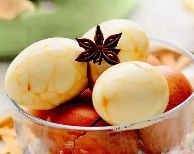 鸡蛋、八角、香叶、桂皮、绿茶、老抽、鸡精、盐。