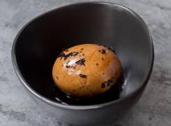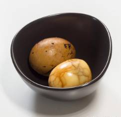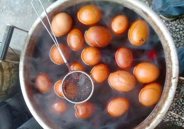 茶叶蛋,著名小吃,全国大部分地区都有该小吃。是煮制过程中加入茶叶的一种加味水煮蛋,因其做法简单,携带方便,多在车站、街头巷尾,游客行人较多之处等场所置小锅现煮现卖,物美价廉。