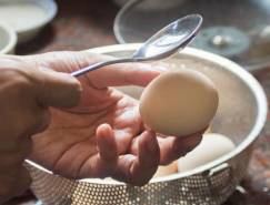 1、煮鸡蛋前,先要用勺子轻轻敲打鸡蛋,轻敲鸡蛋的目的在于,使每个蛋都有裂缝时,这样烹煮时容易入味,熬煮时间也不用太久。
