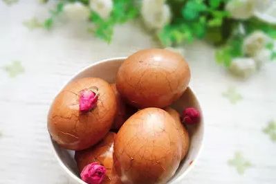 原料:鸡蛋6个、干玫瑰花15克、茶叶(最好绿茶)15克、大料3粒、甘草适量、桂皮一小块、盐、冰糖适量
