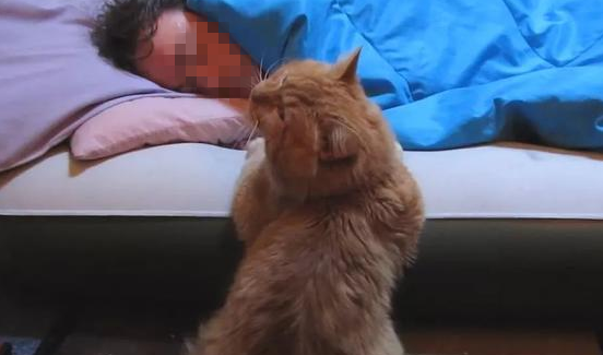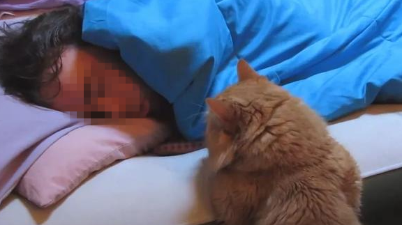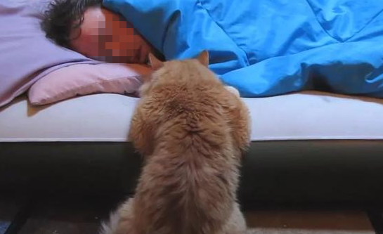 橘猫很暖心,没吃的就憋屈的坐在床头,也不忍心叫主人起床