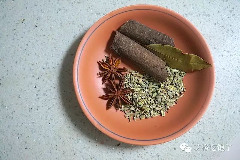 这是我常用的几种香料,八角、桂皮和香叶大家都认识,细粒的那种叫小茴香,少不得。如今菜场干货摊都有小包装卖: