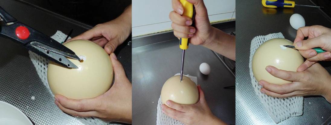 这样的话,能保留下完整的壳,做各种工艺品,比如蛋雕。