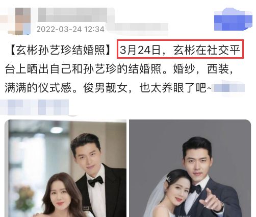 在3月24日,有网友曝出了两张照片,称是玄彬和孙艺珍的婚纱照,还是玄彬晒出来的!照片中的两人是玄彬和孙艺珍,婚纱、西装,满满的仪式感!两人确实很养眼,但是却有细心的网友发现问题,觉得这好像不是两人的结婚照!