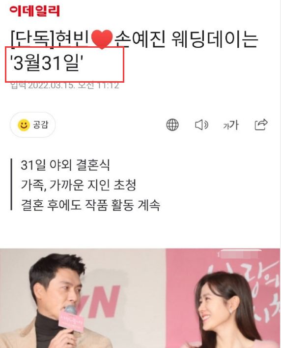 随着孙艺珍和玄彬的婚礼越来越近,有不少网友也开始活络起来,毕竟这对超甜的情侣,根据韩媒报道,不会选择大操大办,只会邀请亲朋好友参加,且定在3月底举行婚礼仪式!