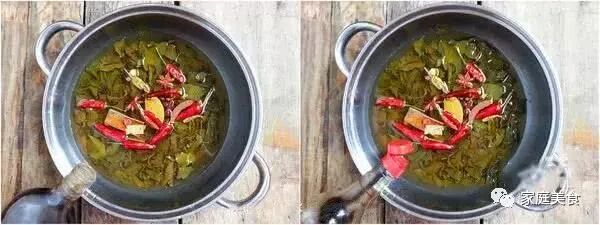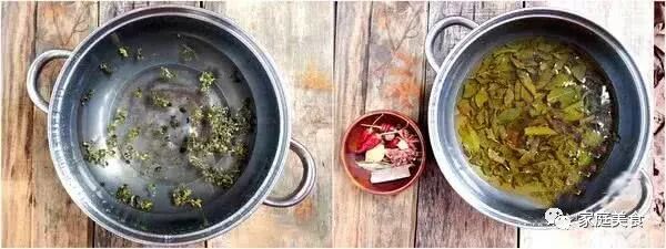 3,锅中注水烧开,放入铁观音泡发。家里红茶没有了;在铁观音和绿茶之间权衡了一下,最后决定用铁观音。铁观音泡发到颜色和香气扑鼻时,放进洗净的卤料。