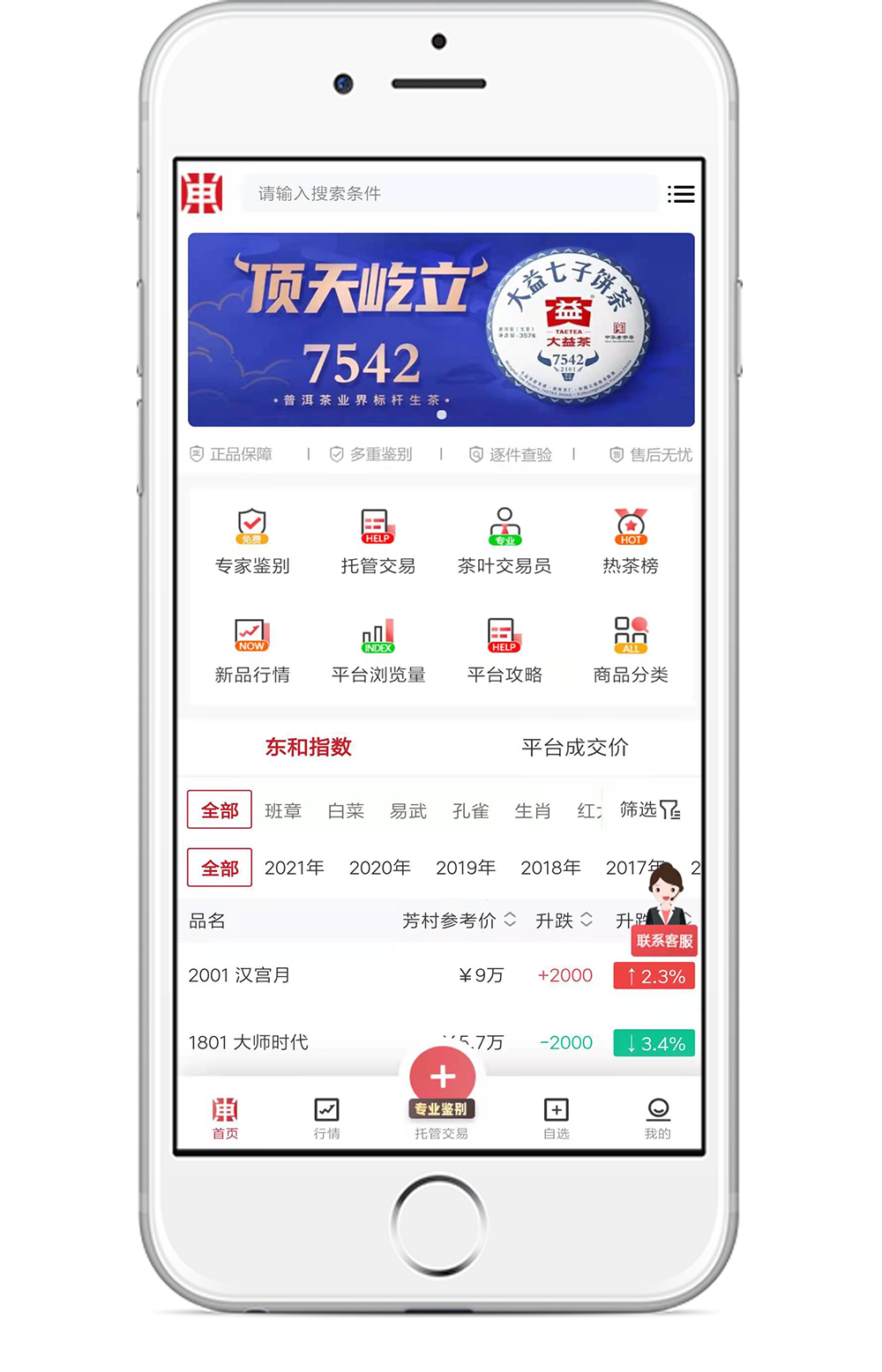 新增“平台成交价”平台成交价指的是:所有在东和茶叶线上托管交易服务成交的大益茶,都可以在这里看到真实成交价格。直观的成交数据,为客户提供评估产品的有效信息,提高了成交的效率。