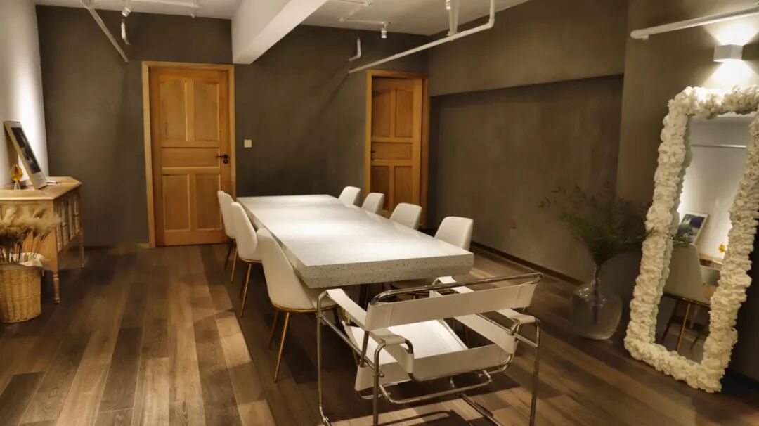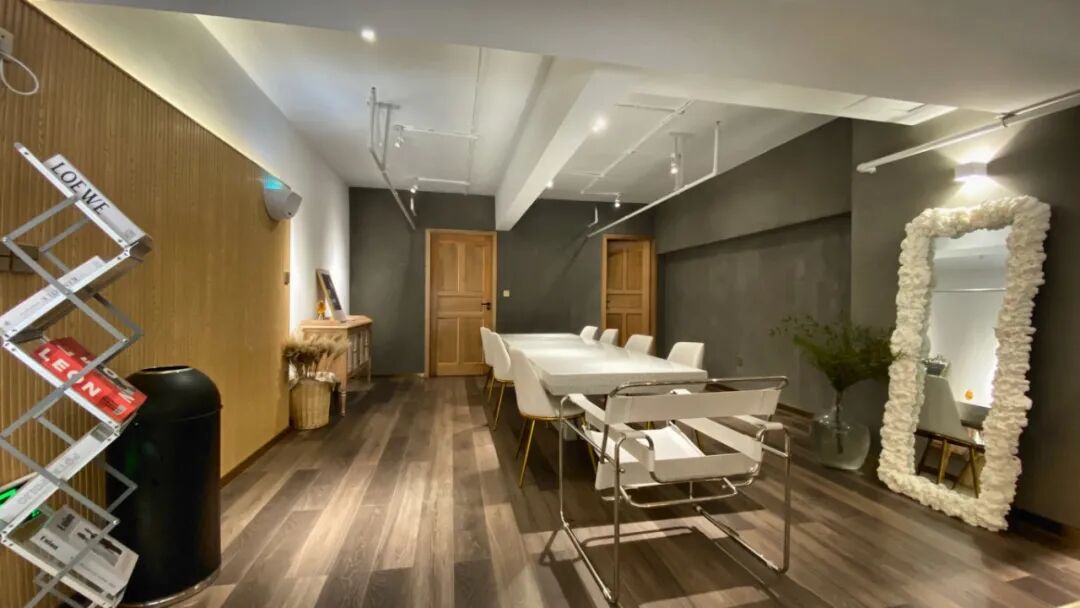 店内环境是一大亮点。灰与白交替的墙面,给人感觉安静与中性,不带有任何情绪的闪动,既不压抑也不张扬,金属质感与原木的嵌入又跳脱单调无趣,让人眼前一亮,慢慢沉淀下城市的喧嚣。