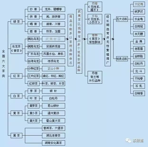 到底有没有什么简单的方法,让人一眼就记住它们呢?其实茶叶的分类,归根到底是由工艺决定的,其中发酵度是很重要的一个指标,简述如下: