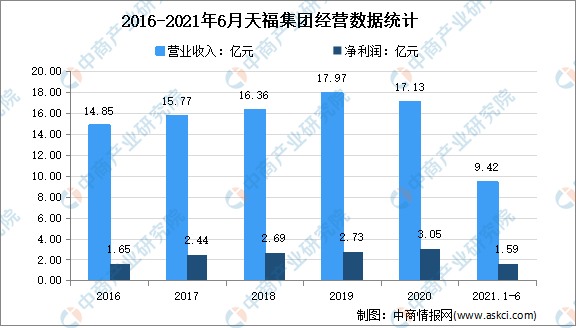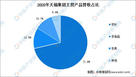 天福主要经营传统中式茶产品,整合了中国的茶叶资源,开发出多达一千八百多种的天福系列产品,主要产品包括乌龙茶、绿茶、红茶、普洱茶、花茶、白茶等包装茶、袋泡茶,以及茶食品、茶具、茶艺用品、香道等系列。截至2020年12月31日止年度,天福集团的绝大部分收入来自销售茶叶、茶食品及茶具。天福集团的收入由2019年的17.97亿元减少至2020年的17.13亿元,同比下降4.7%。