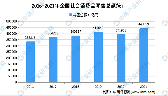 2021年,社会消费品零售总额亿元,比上年增长12.5%,两年平均增速为3.9%。其中,除汽车以外的消费品零售额亿元,增长12.9%。扣除价格因素,2021年社会消费品零售总额比上年实际增长10.7%。2021年12月份,社会消费品零售总额41269亿元,同比增长1.7%。其中,除汽车以外的消费品零售额36618亿元,增长3.0%。
