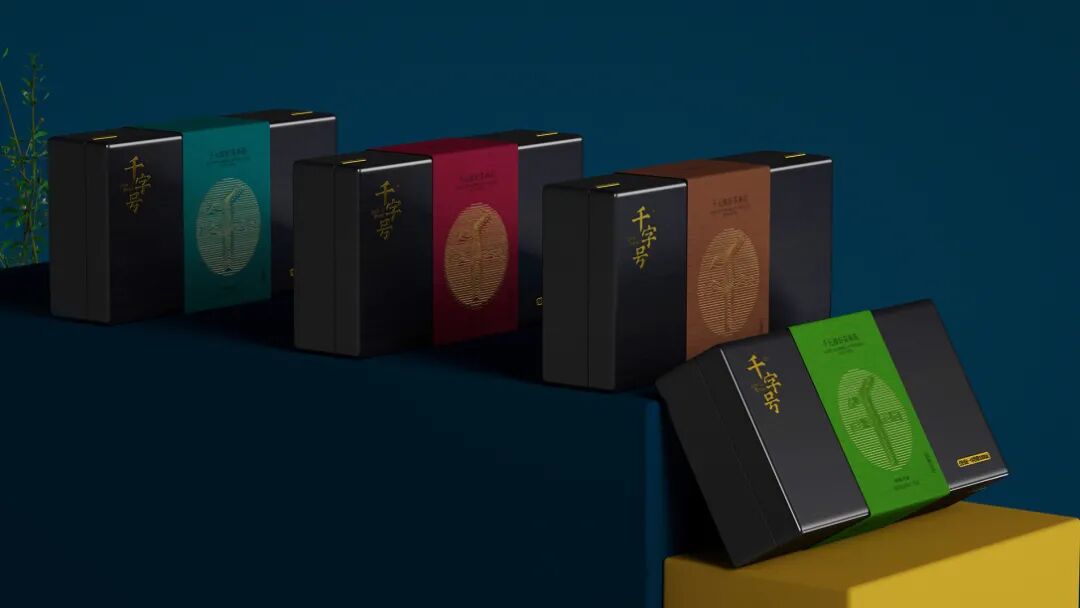 包装侧面都以烫印线条及工艺勾勒对应事物