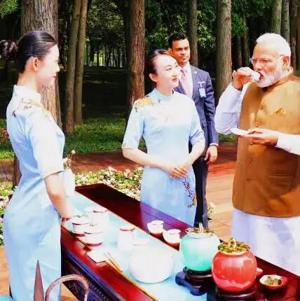 中印东湖茶叙现场,印度总理莫迪品鉴八马茶