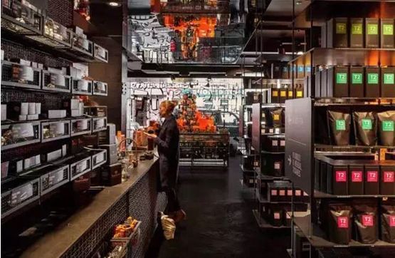 T2的门店打破茶叶店一贯光亮、精致、优雅的风格,而是走浓浓的工业风。