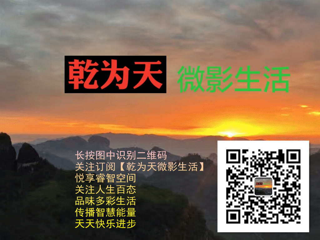 ▍关注订阅|乾为天微影生活|悦享睿智空间,关注人生百态,品味多彩生活,传播智慧能量,天天快乐进步!▍☀商务:zqb1961 公众号号:zqb8858★长按二维码,选择“识别图中二维码”进行关注