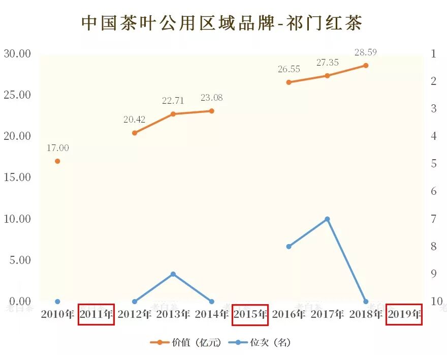 ▲祁门红茶上榜比较不稳定,但10年期间也是上榜7次。