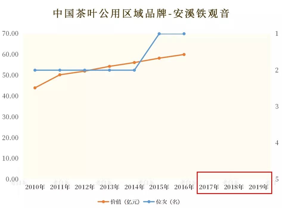 ▲虽然近3年,安溪铁观音品牌均未上榜,但2010~2016年期间,其品牌名次都位列前茅。