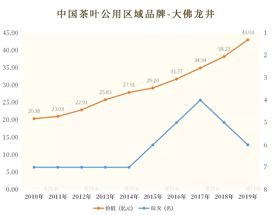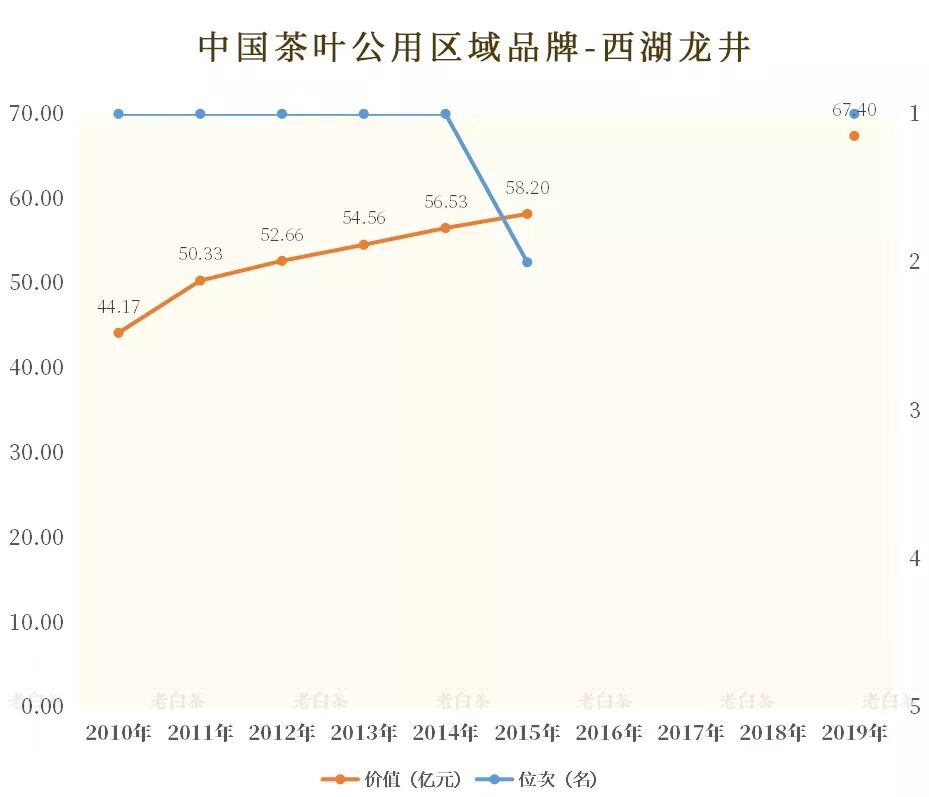 ▲从10年的趋势图中,西湖龙井虽然在2016、2017、2018年未上榜,但是西湖龙井一旦上榜几乎位居首位,时隔3年后的2019年仍位居榜首。