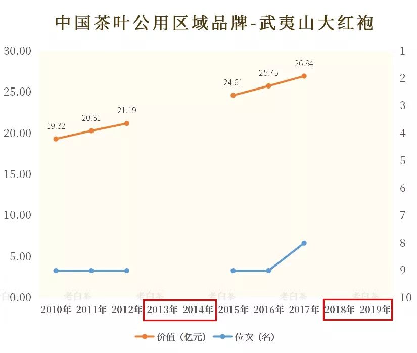 ▲武夷山大红袍茶茶品牌10年期间上榜6次。