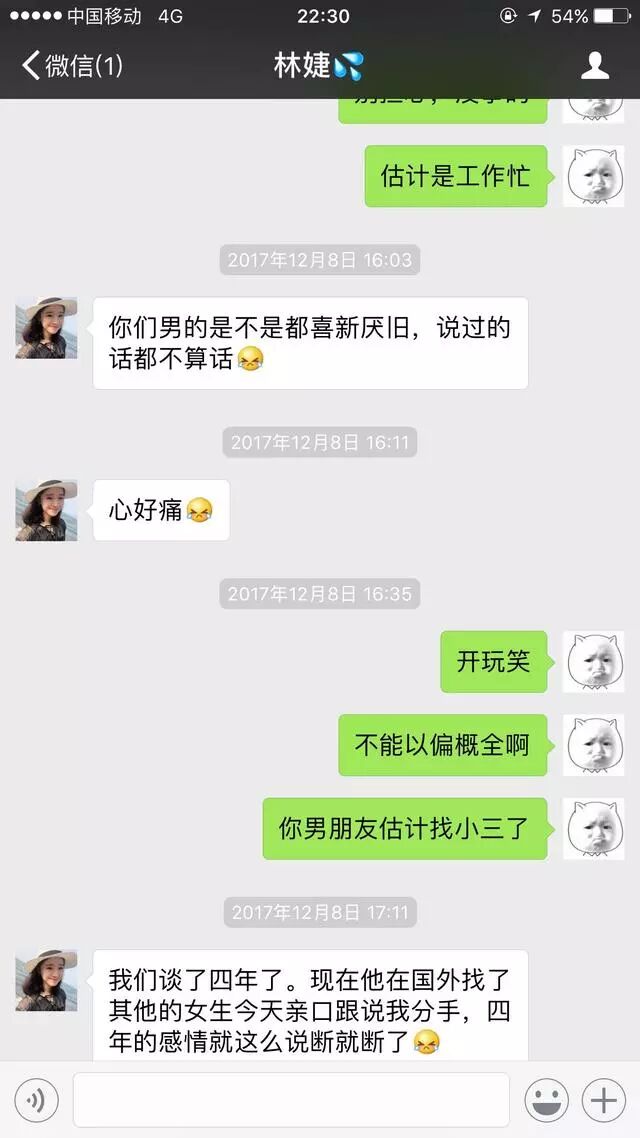 @当然柿:碰过一模一样的。加错好友,清纯美女头像,留学男友出轨,倾吐心事培养感情,工作不顺辞职,回失聪外公茶山,卖茶。我曾以为遇到爱情了。