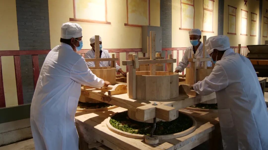 活动后大家参观安石滇红活态博物馆,并用马歇尔机械制作2022年第一桶凤庆滇红茶。据工作人员介绍上个世纪50年代中期,昌宁红安石茶厂(原凤庆顺宁实验茶厂)引进了一套当时处于世界先进水平的于1930年代制造的英国马歇尔茶叶揉捻机,成功制作出了红碎茶,随后又于1964年先于全省各茶厂开始规范化批量生产滇红碎茶,产品出口到前苏联,获得专家的好评。至此,“滇红”既有功夫红茶,又有红碎茶。现如今那台1930年代制作的英国马歇尔茶叶揉捻机依旧在昌宁红安石茶厂(原凤庆顺宁实验茶厂)正常运转。红碎茶成为全球销量最大的茶叶品类,在这近150年的世界制茶发展史中,昌宁红安石茶厂(原凤庆顺宁实验茶厂)存留了近100年的历史印迹。马歇尔茶叶揉捻机