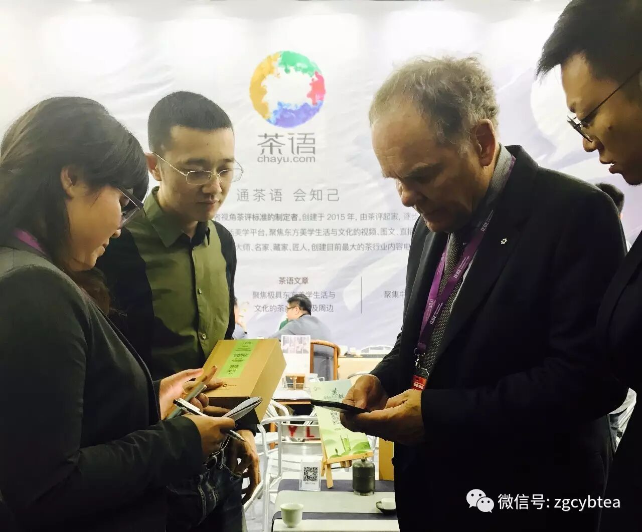 作为国际顶级的互联网专家唐·塔普斯科特,不仅是“数字经济之父”,也是专业葡萄酒品鉴师。在其3月28日专题演讲后,还专程前往茶语网展区,详尽地分析了如何通过二维码扫描,进入健康茶叶世界的场景描绘。