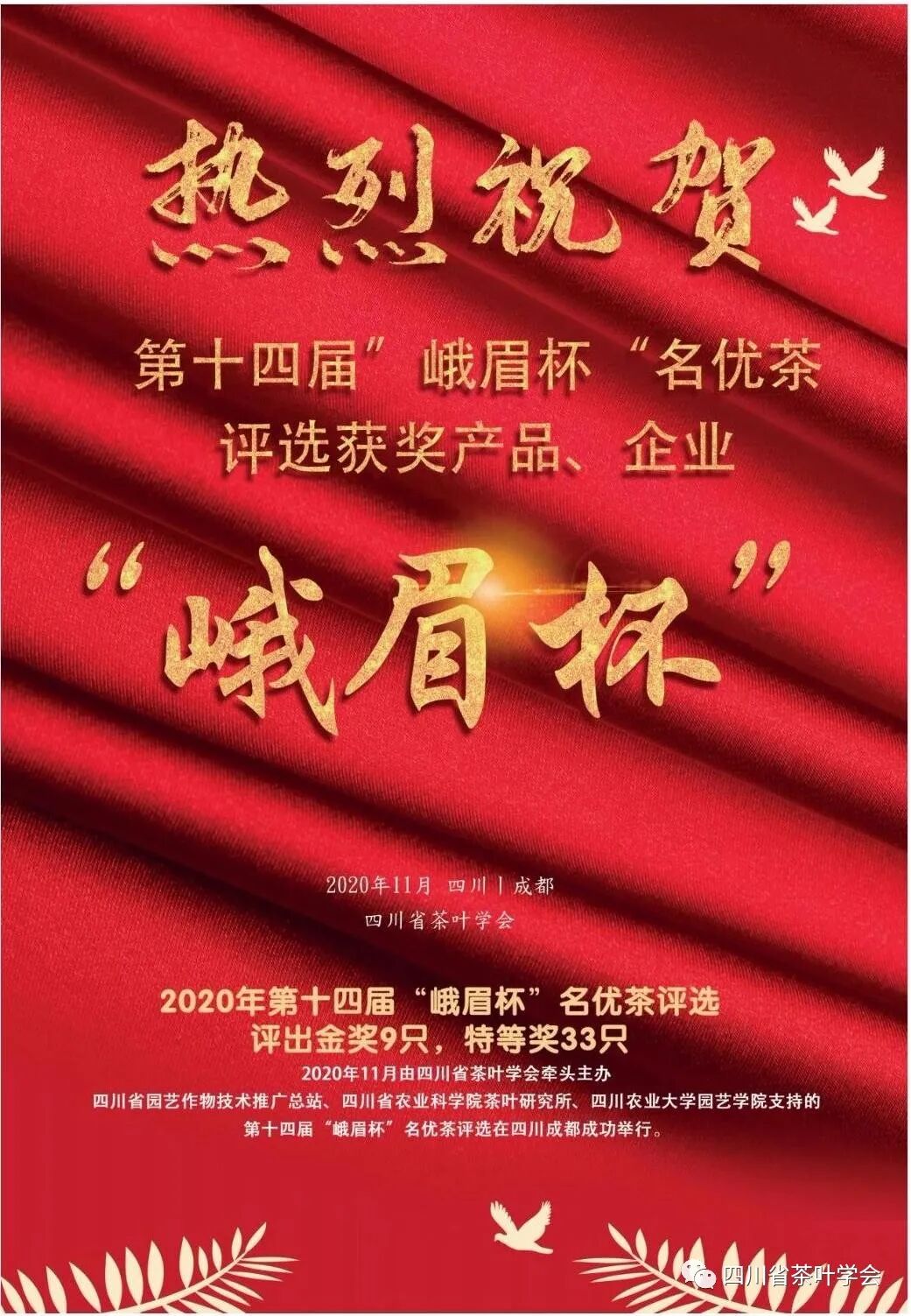 为认真落实省委省政府“5+1”现代产业体系和“10+3”现代农业产业体系建设,加快推进“精制川茶”高质量发展,由四川省茶叶学会牵头主办、四川省园艺作物技术推广总站、四川省农业科学院茶叶研究所、四川农业大学园艺学院支持的第十四届“峨眉杯”名优茶评选近日在四川成都成功举行。