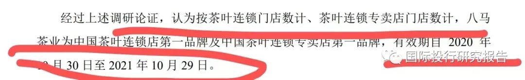 虽然加盟商都在喝西北风,但为了上市,公司最近3年花费2000万的钱给中介机构去调查这些加盟店,并弄出一个中国茶叶连锁店第一品牌的称号,有意思的是,那家调研公司明确这个到2021年10月31日到期!也就是说,现在已经不是了。
