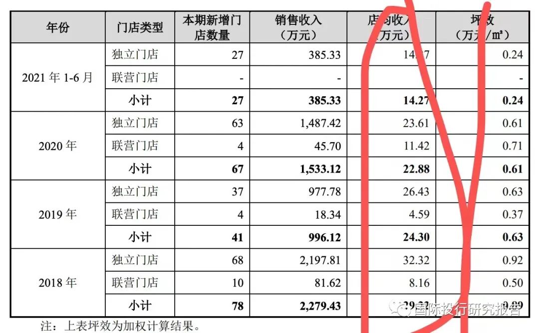 2021年新增的27家门店,销售额为385.33元,店均14.7万,每平方收入2400元,也就是一个月销售2.45万元,按照30%的利润率只有7350元利润。
