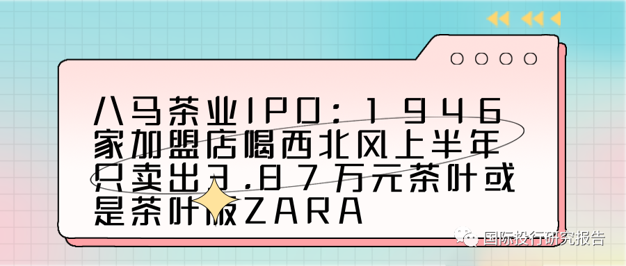 八马茶业IPO1946家加盟店上半年只卖出3.87万元茶叶或是茶叶版ZARA福州三兄弟创业安踏七匹狼高力三大老板是亲家