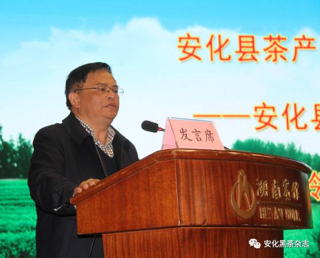安化县茶产业发展领导小组组长蒋跃登在发言中表示,安化黑茶具有悠久的历史优势,在茶行业中比重不断提升,目前已由产品升级为产业,辐射多个行业,拥有黑茶产业不可复制的原料基地、完整的产品标准和现代生产技术,特别是刘仲华教授领衔的科研团队研究项目《黑茶提质增效关键技术创新与产业化应用》获得国家科技进步二等奖,这是茶叶界前所未有,强大黑茶科研的支撑力量,成为安化黑茶发展的新引擎。安化黑茶已经走过了持续、健康、快速发展的十年,2016年安化黑茶实现综合产值125亿元,税收突破2亿元。2017年,安化黑茶将继续以打造千亿湘茶为己任,以精准扶贫为己任,抓好国际国内市场拓展,打好产品的转型升级,进一步规范市场,努力实现茶叶加工量7.2万吨,综合产值达150亿元,上缴税收2.5亿元的产业目标。