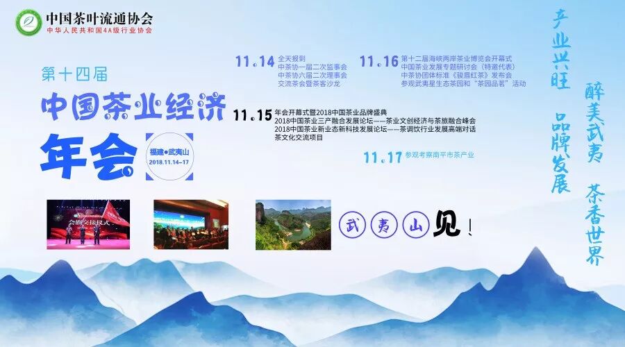 2018年11月14日,中国茶叶流通协会第六届二次理事会全体会议在福建省南平武夷山召开。中国茶叶流通协会会长王庆,中国茶叶流通协会监事长周重旺等40余位中国茶叶流通协会副会长及200余位理事、常务理事单位的代表出席了本次会议。