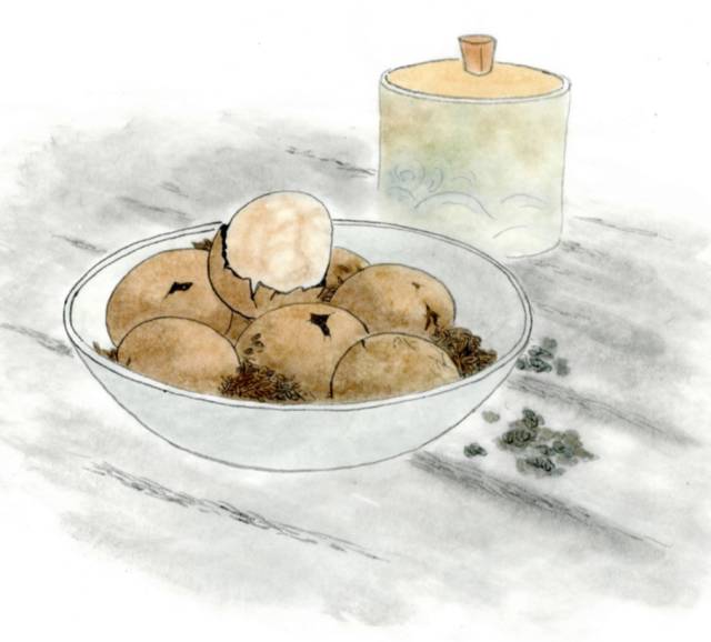 您会做茶叶蛋吗?首先将土鸡蛋用水煮熟,再把蛋壳敲碎;然后把红茶(或乌龙茶)20克、香叶 2片、茴香 1个、桂皮 1 块、干辣椒 2只、冰糖 10 小颗、盐 2勺,与鸡蛋一起大火煮开;再慢慢用小火炖一个小时。一碗香喷喷的茶叶蛋就做好了,是不是口水都流出来了呢?