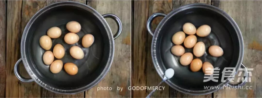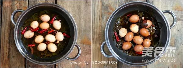 另外一个技巧就是要煮两遍,第一便是煮熟,第二遍是将壳敲碎加入辅料。煮出来的蛋香气四溢,色泽均匀,卖相极佳。