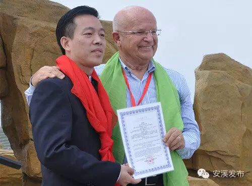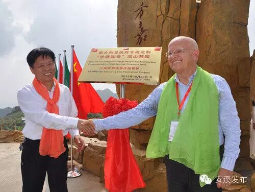 意大利总统文化顾问路易斯·高塔特教授与安溪县人民政府副县长王金章在三和茶业基地共同为意大利总统府专属定制“丝路之音”高山茶园揭牌。