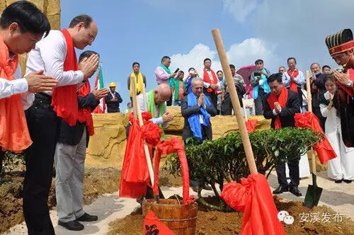 意大利总统文化顾问路易斯·高塔特教授、海峡两岸茶业交流协会会长张家坤、安溪县人民政府副县长王金章、三和茶业董事长吴荣山等嘉宾共同种植百年老茶树。