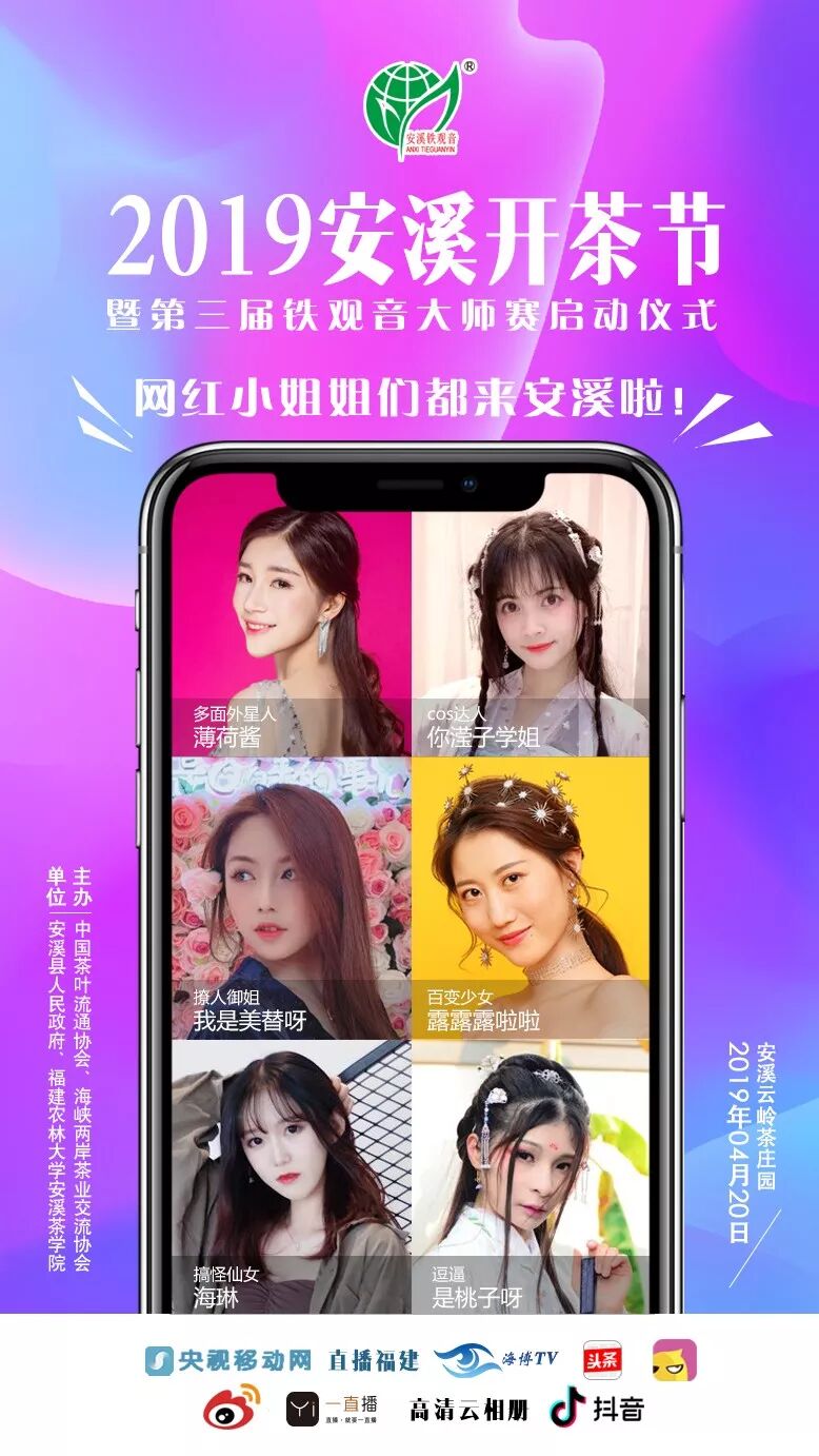 值得一提的是,现场不仅有一大批扛着“长枪短炮”的“摄影采风团”穿梭在人群中,拍下一张张“2019安溪开茶节”的大片,更有花椒直播网红薄荷酱现场直播,同时还邀请了cos达人“你滢子学姐”、撩人御姐“我是美替呀”、逗逼“是桃子呀”、搞怪仙女“海琳”、百变少女“露露露啦啦”等5位抖音网红现场拍摄抖音视频,开启 #安溪铁观音抖起来 的抖音平台挑战赛。挑战赛将与“第三届安溪铁观音大师赛”结合,延续至比赛结束,通过点赞、评论、转发等综合指数评出获奖者,于大师赛颁奖典礼上宣布最终结果,获奖者将获得重磅大礼和证书!