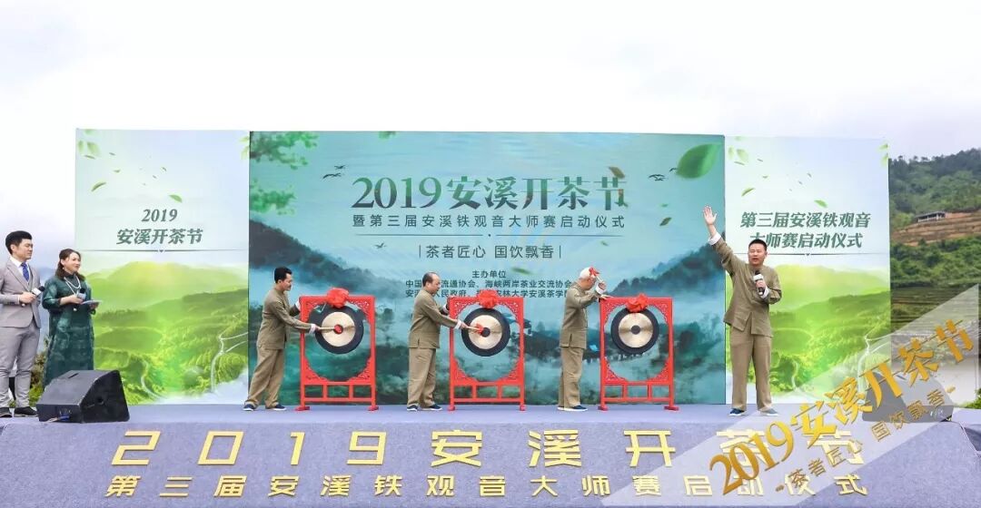 主题为“茶者匠心 国饮飘香”的2019安溪开茶节暨第三届安溪铁观音大师赛启动仪式由海峡两岸茶业交流协会、中国茶叶流通协会、安溪县人民政府和福建农林大学安溪茶学院共同主办,两大茶行业专业协会领导、安溪县领导、中国制茶大师、安溪铁观音大师、名匠、茶企代表、茶叶专业合作社代表、媒体记者代表等近千人出席了开茶节盛事。