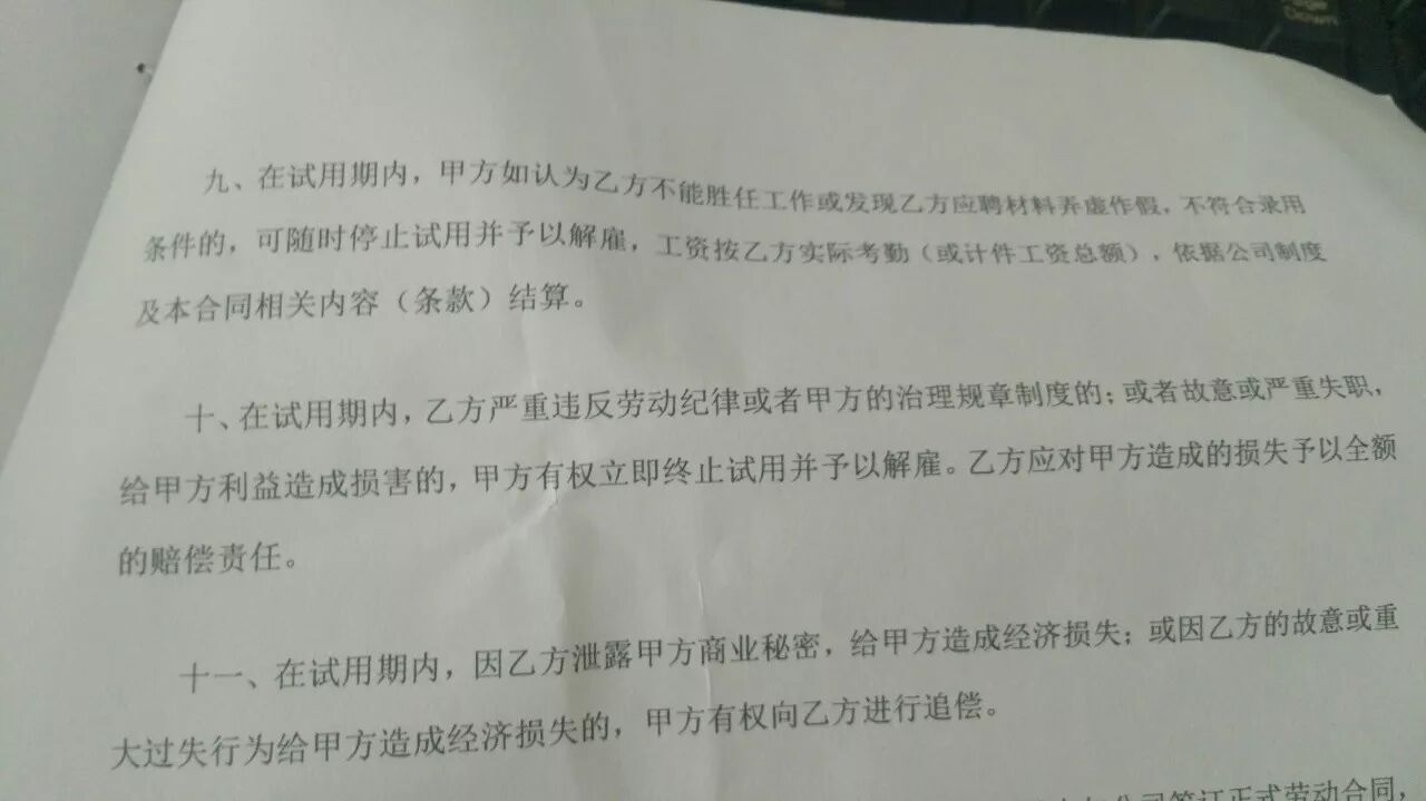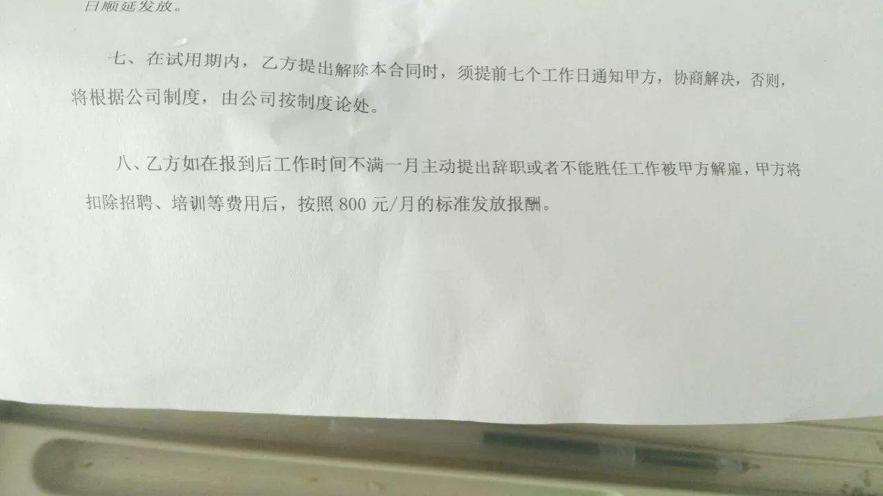 答:要签两份劳动合同,第一份是个正规的劳动合同,第二份是一个《试用期劳动合同》,里面写着,试用期为三个月,三个月内你因为能力问题被老板炒掉或者离职,只给你800元。