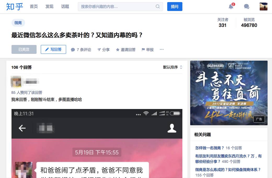 知乎上一直都有疑问“微商卖茶套路”的帖子,众多受骗网友也是议论纷纷。然而在2017年6月6日,在知乎这个帖子下面,出现了一个神评论:
