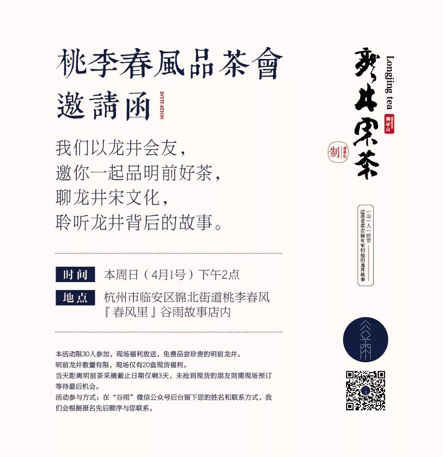 本周日(4.1)下午2点,谷雨以茶会友,诚意相邀。