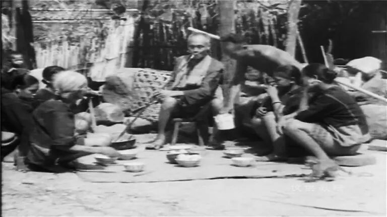纪录片《海南红山之外》中黎族人席地而坐喝大碗茶的画面。 海南省民族学会 提供