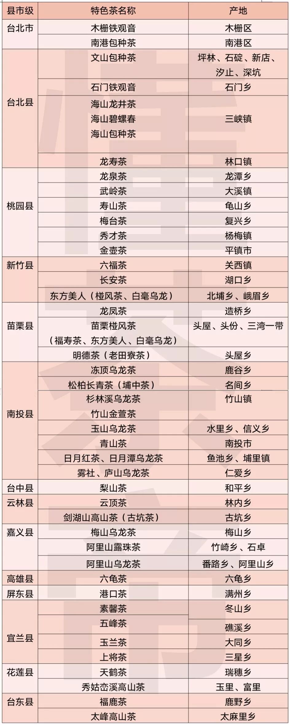 ▲台湾各茶区特色茶名称及产地(懂茶帝制表,转载请注明出处)