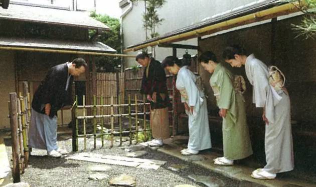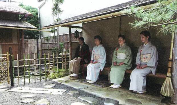 当日的茶会开始前十五分钟左右,客人会在门前等待。如果大门已经稍稍打开一点的话,则表示客人现在可以进入了。