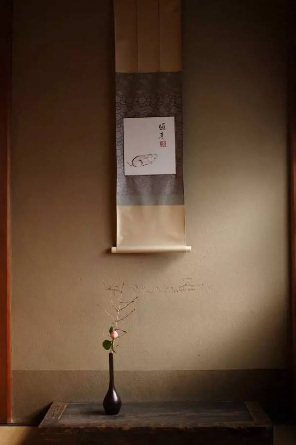 对四季的敏锐感觉是日本人的独特情怀,这种情怀也相得益彰的体现在茶事道具中。主人凹间的壁画,色纸短册还有墙上的挂物件都会体现当下的节气。