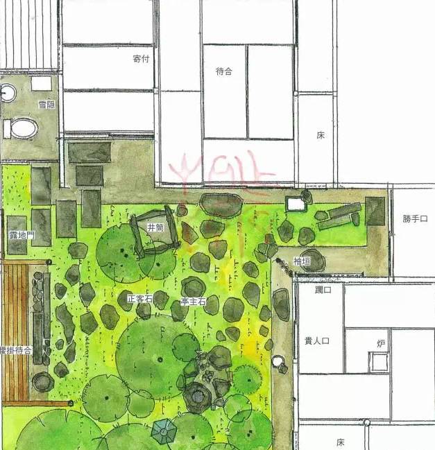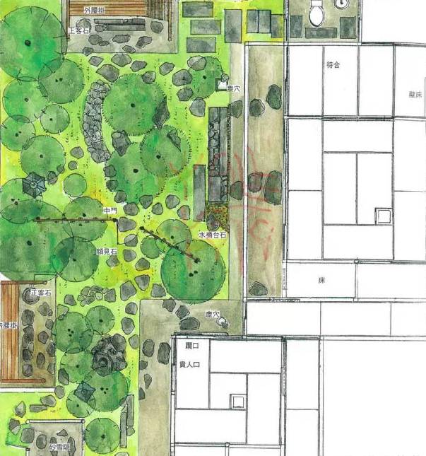 茶庭的露地平面图(可点击放大)