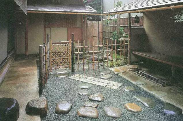 茶庭的设计深受这一思路的影响,极力营造寂静和顿悟的气氛。通常完整的茶庭分为内、外两个部分,分别被称为外露地和内露地。
