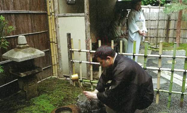 主人来到蹲踞的地方“净手”。